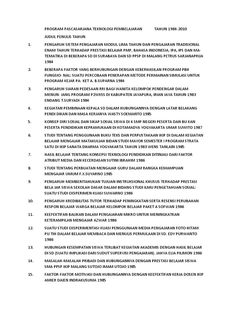Pemberdayaan guru sekolah dasar negeri arjosari. Keefektifan model respons analisis untuk meningkatkan kemampuan apresiasi cerita anak dan membaca kreatif siswa kelas v sekolah dasar . Pengaruh motivasi belajar dan penempatan tempat duduk terhadap hasil belajar ilmu pengetahuan alam siswa kelas v di sekolah dasar negeri. Proposal tesis contoh tesis pendidikan sd. Contoh judul skripsi jurusan filsafat .